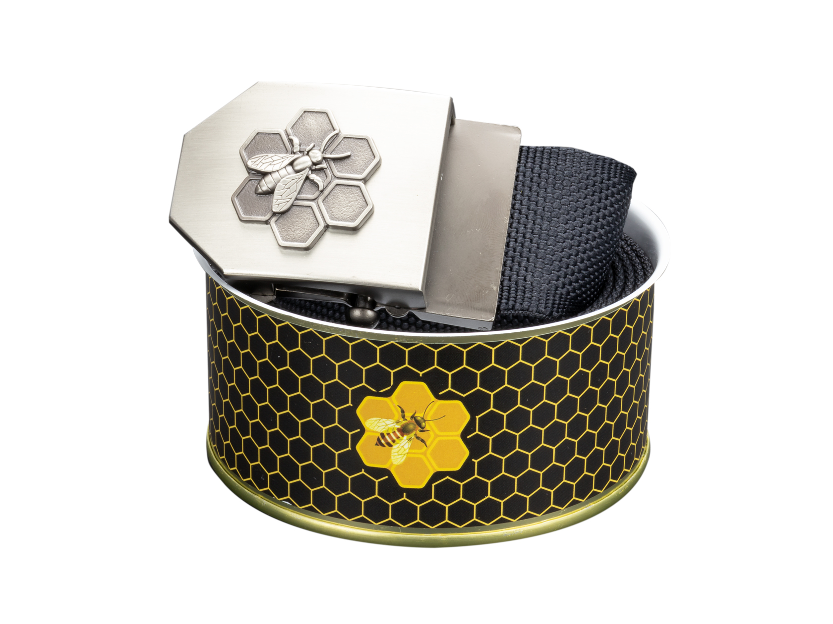 Nová, masivní kovová přezka s ostře řezanými rysy obsahuje 3D motiv včelaři. Přezku lze použít jako otvírák na pivo. Atraktivní vzhled podtrhuje luxusní povrchová úprava starostříbro. Zubový mechanismus přezky umožňuje velmi snadné zkrácení textilního popruhu podle potřeby zákazníka. Jedna univerzální délka popruhu 150 cm uspokojí všechny zákazníky.