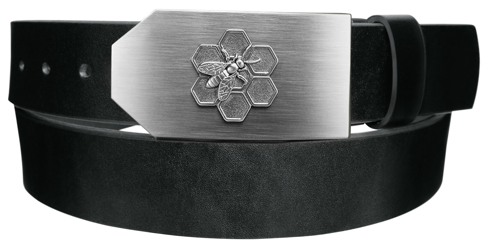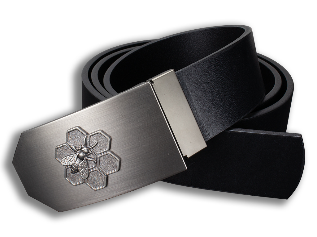 Nová, masivní kovová přezka s ostře řezanými rysy obsahuje 3D motiv včelaři. Atraktivní vzhled podtrhuje luxusní povrchová úprava starostříbro (ruční patinace). Zubový mechanismus přezky umožňuje velmi snadné zkrácení koženého opasku podle potřeby zákazníka. Základní délka opasku umožňuje rozsah použití až do 115 cm v pase. Pro větší objem v pasu je nutné vybrat nadměrnou délku, která má rozsah až do 125 cm v pase. Měření potřebného objemu v pase měřte VŽDY v místě, kde nosíte kalhoty (rozdíl objemu v pase a přes boky je značný). Šířka opasků je 4 cm, tloušťka kůže bývá v rozsahu 3,5 - 4 mm.